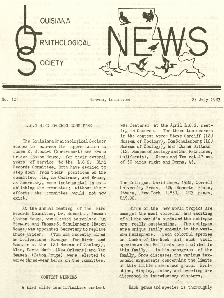 Society. 101Nonroe, Louisiana. O. S BIRD RECORDS COMMITTEE