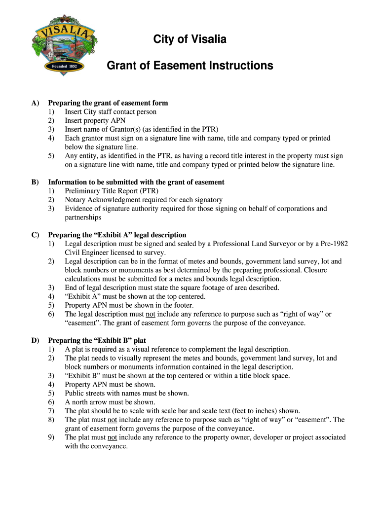 Information such as the identities of the parties involved, the location and description of the easement, and any conditions or restrictions must be reported on Grant of easement 9-30-11docx.