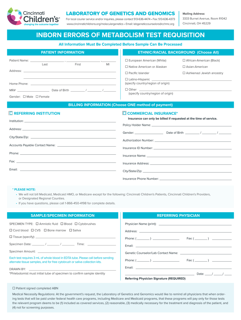 LABORATORY OF GENETICS AND GENOMICSMailing Address:For local courier service and/or inquiries, please contact 5136364474 Fax: 51363643733333 Burned Avenue, Room R1042www.cincinnatichildrens.org/moleculargenetics