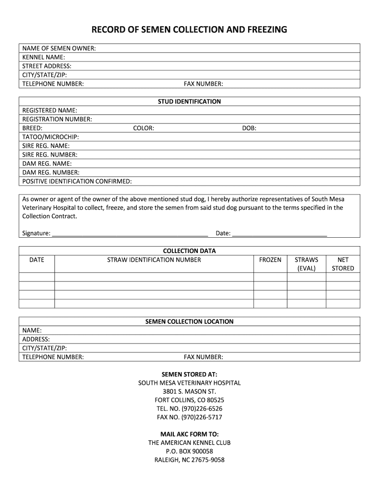 RECORD OF SEMEN COLLECTION AND FREEZING