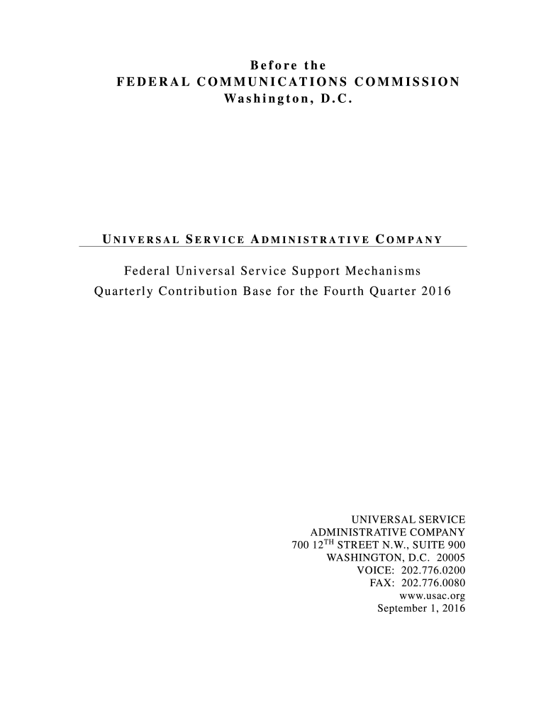 Was h i n g t o n, D. C.UNIVERSAL SERVICE ADMINISTRATIVE COMPANY