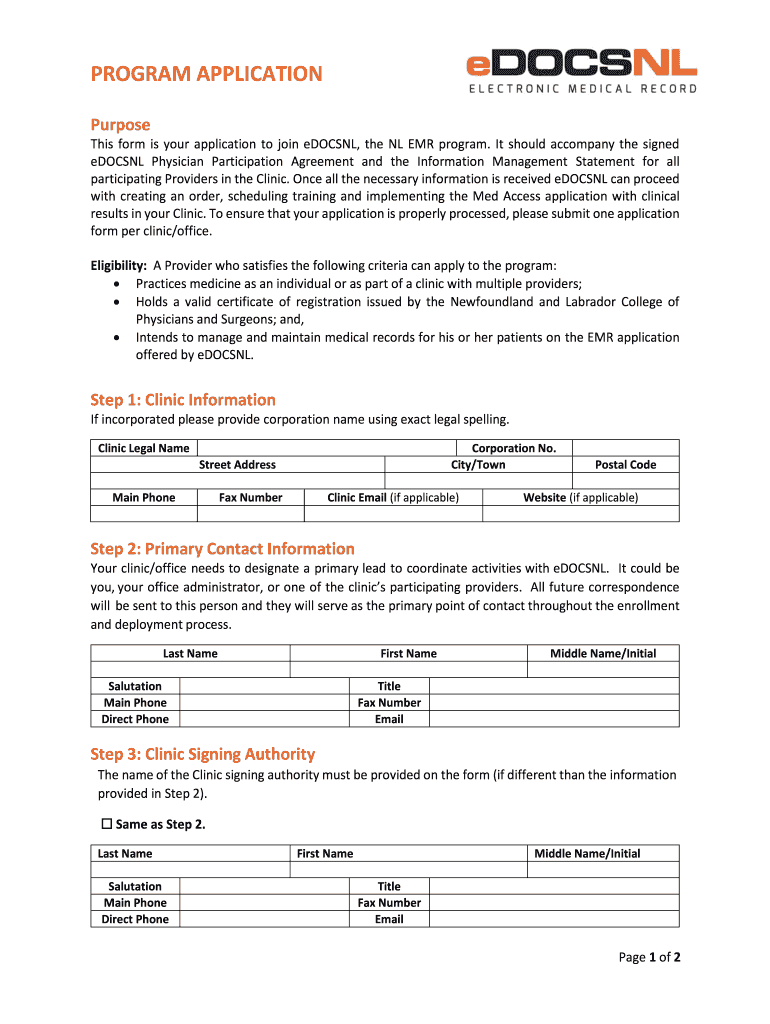 This form is your application to join dorsal, the NL EMR program. It should accompany the signed