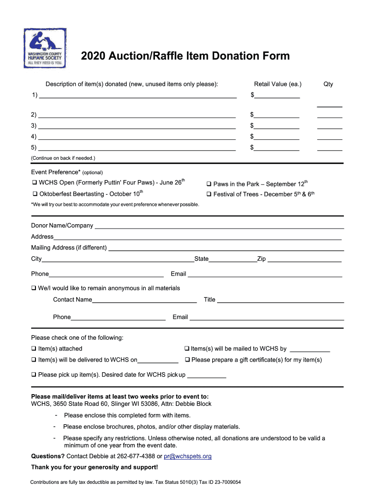 Locate the organization or event that is hosting the 2020 auctionraffle. Get in touch with them to confirm their donation requirements and any specific instructions they may have.