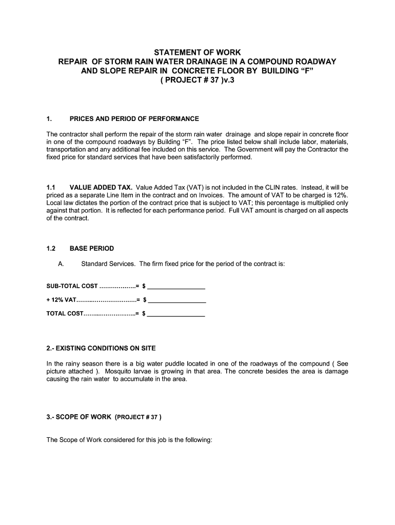 Get the free SOW forREPAIR OF RAIN WATER DRAINAGE PIPE IN COMPOUND ROAD BY BLDGF- Project # 37 v.3.1