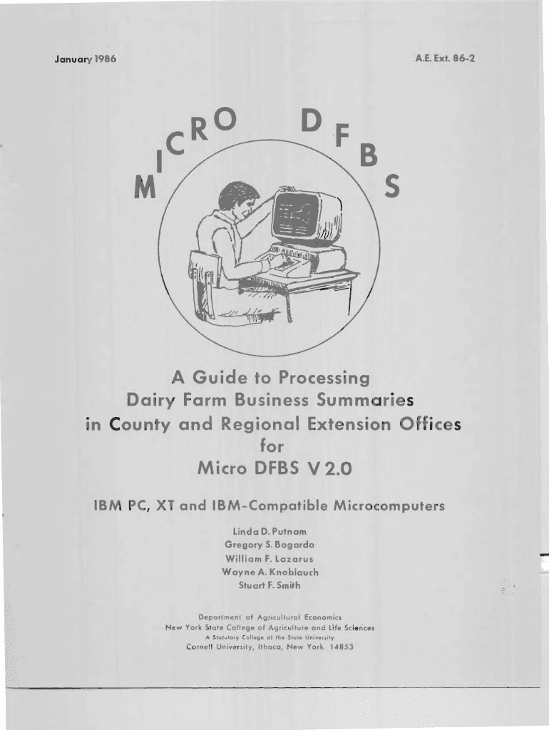 A.E. Ext. 862January 1986A Guide to Processing Dairy Farm Business Summaries in County and Regional Extension Offices for Micro FBS V 2.0 IBM PC, AT and Incompatible Microcomputers Linda D. Putnam