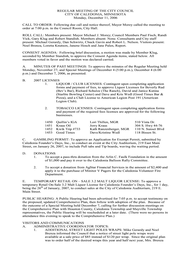 CITY OF CALEDONIA, MINNESOTA