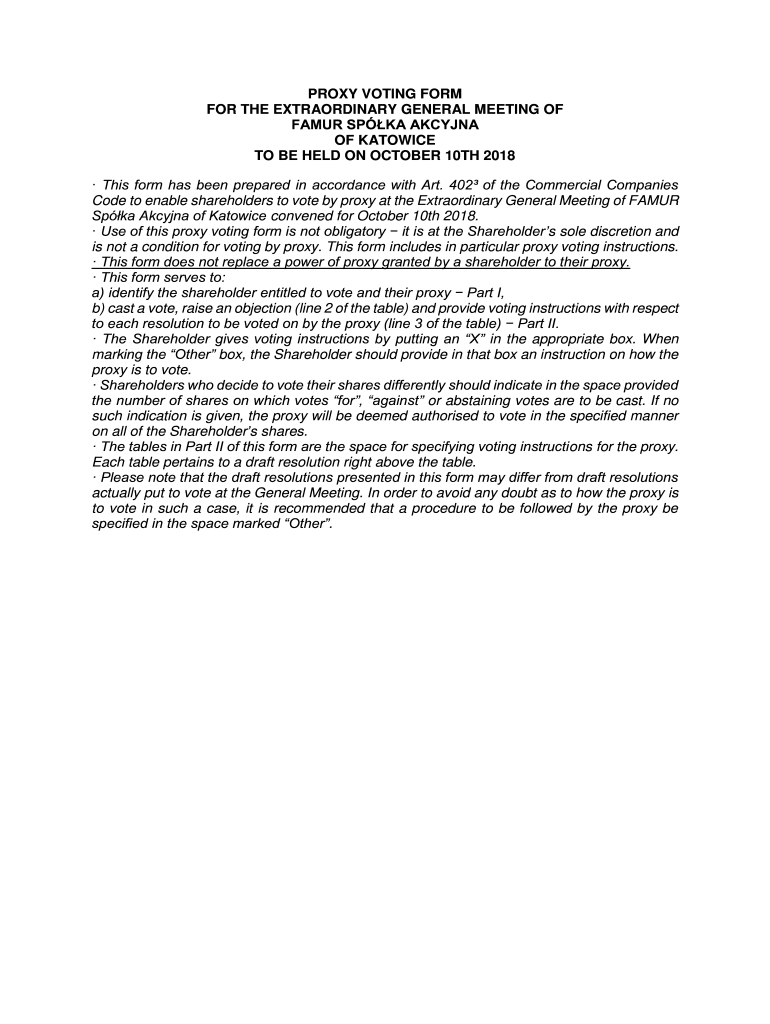 Get the free PROXY VOTING FORM FOR THE EXTRAORDINARY GENERAL MEETING OF ...