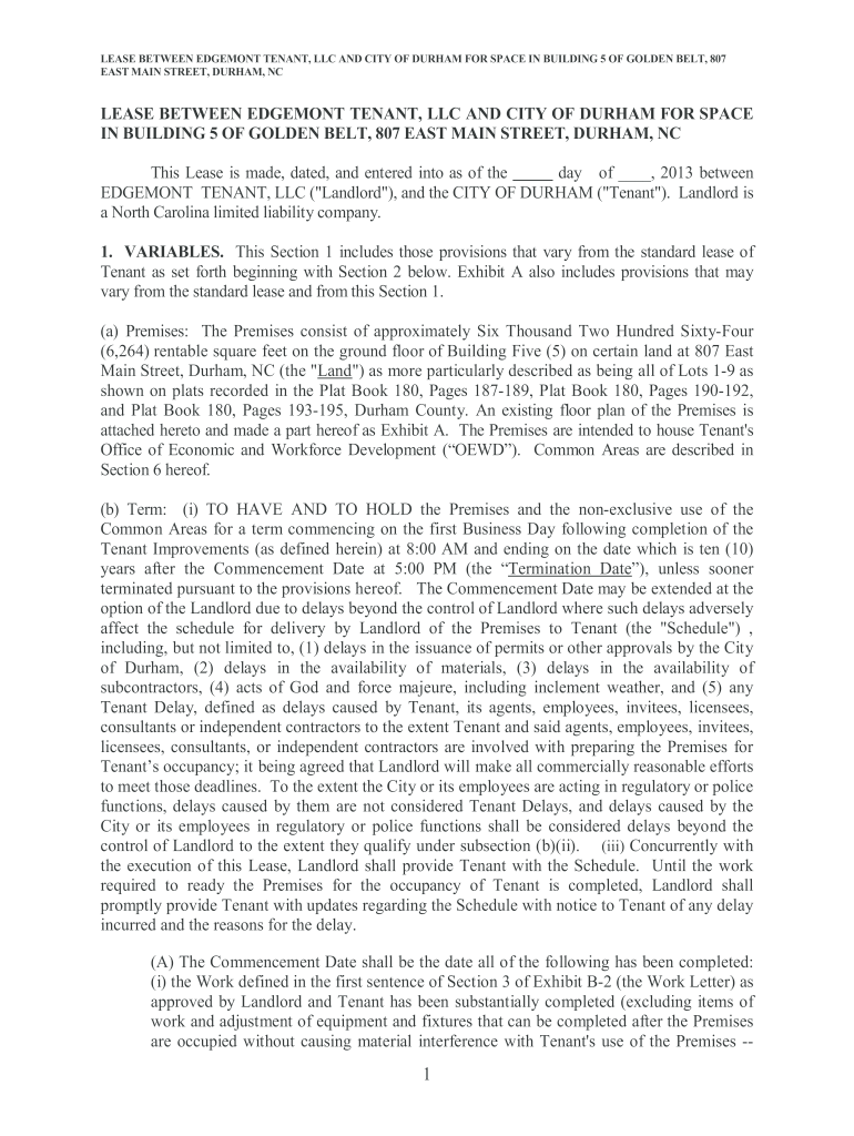 Get the free lease between edgemont tenant, llc and city of durham for space in ...