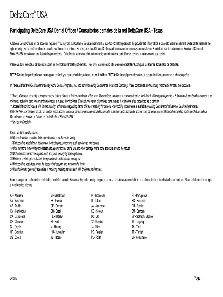Get the free Participating DeltaCare USA Dental Offices / Consultorios dentales de la red DeltaCa...