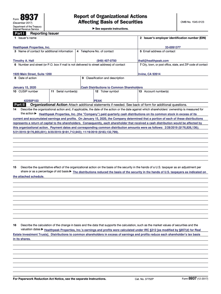 Get the free Form 8937 Report of Organizational Actions Affecting Basis in ...