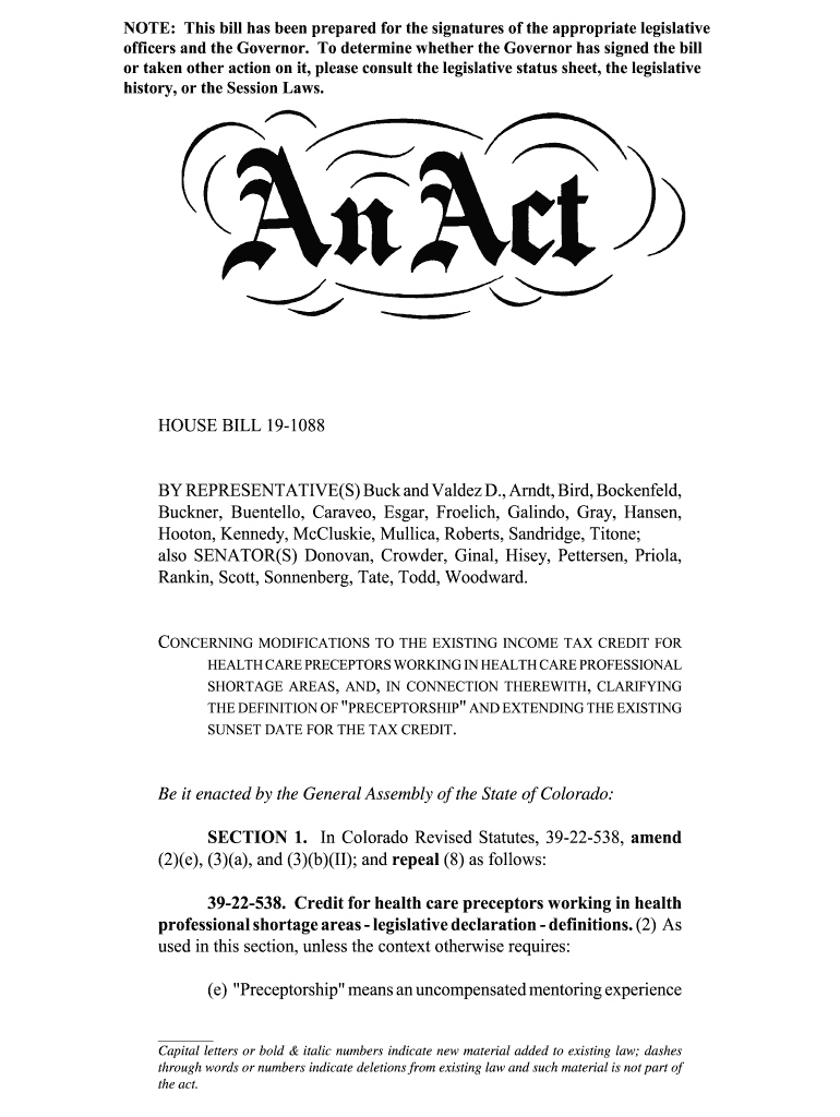 How to fill out house bill 19-1088 by