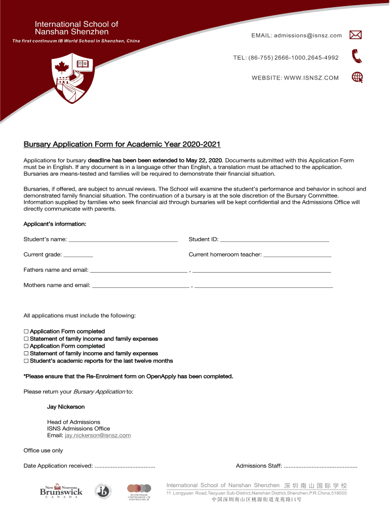 Get the free Bursary Application Form 2020-2021-deadline ext 05.22.20