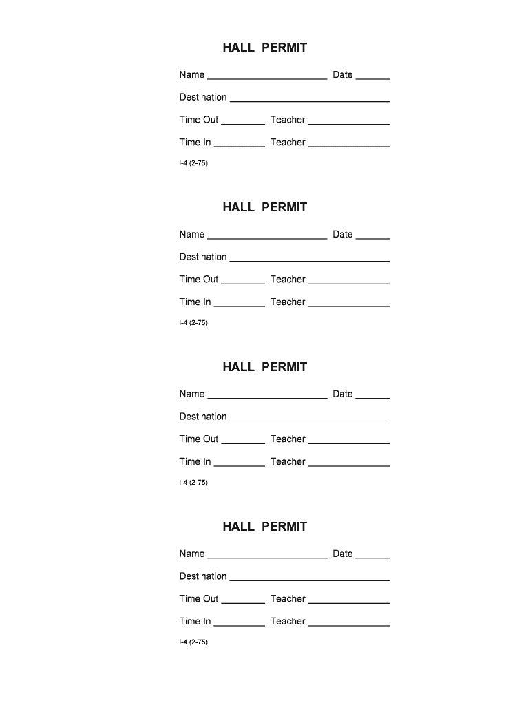 The Hall Permit Form is designed for students in educational institutions who need to leave class or the building for specific purposes. Teachers and administration will also reference this form to monitor student movements.