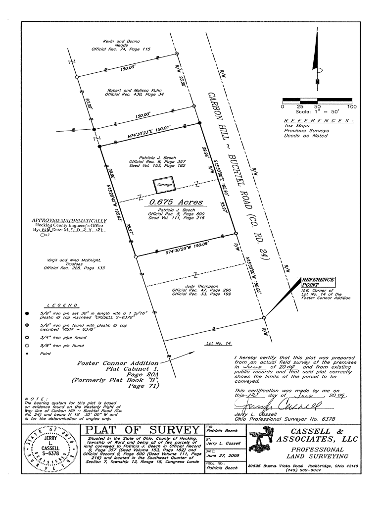 Kevin and Donna Meade Office;I Rec. 74, Page 115 Robert and Melissa Kuhn Official Rec. 430, Page 341 'I 25 50 I 100 0Scale: 1 “50 'REFERENCES: Tax Maps Previous Surveys Deeds as Noted late 'CLA