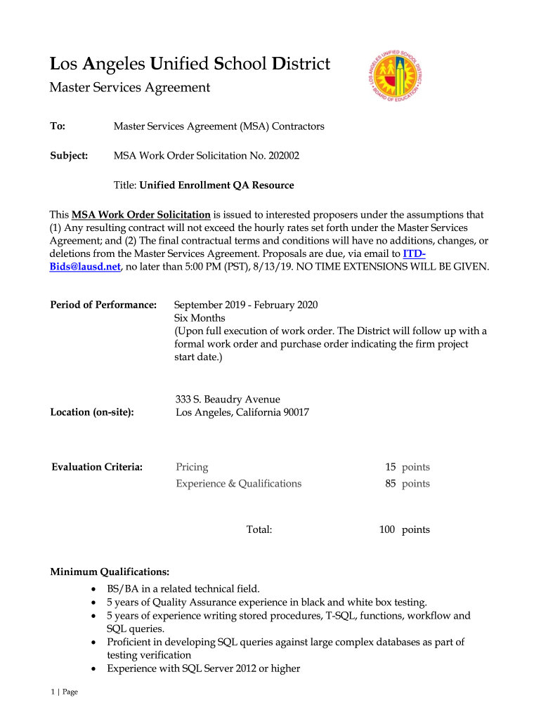 To:Master Services Agreement (MSA) ContractorsSubject:MSA Work Order Solicitation No. 202002