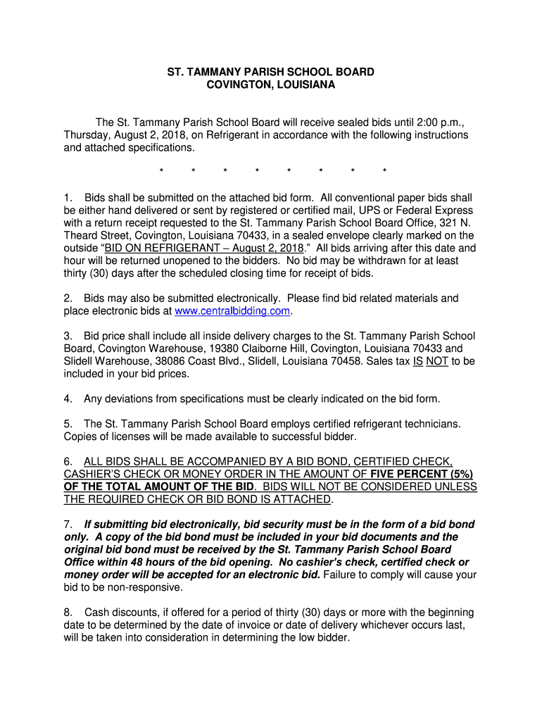 COVINGTON, Louisiana St. Tammany Parish School Board will receive sealed bids until 2:00 p.m.,