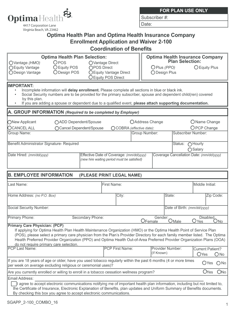 Get the free Optima Health Enrollment Application and Waiver