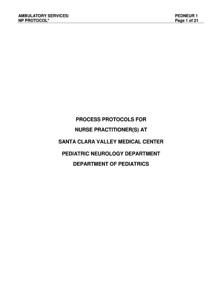 AMBULATORY SERVICES: NP PROTOCOL×PETER 1-Page 1 of 21PROCESS PROTOCOLS FOR NURSE PRACTITIONER(S) AT SANTA CLARA VALLEY MEDICAL CENTER PEDIATRIC NEUROLOGY DEPARTMENT OF PEDIATRICSAMBULATORY SERVICES: