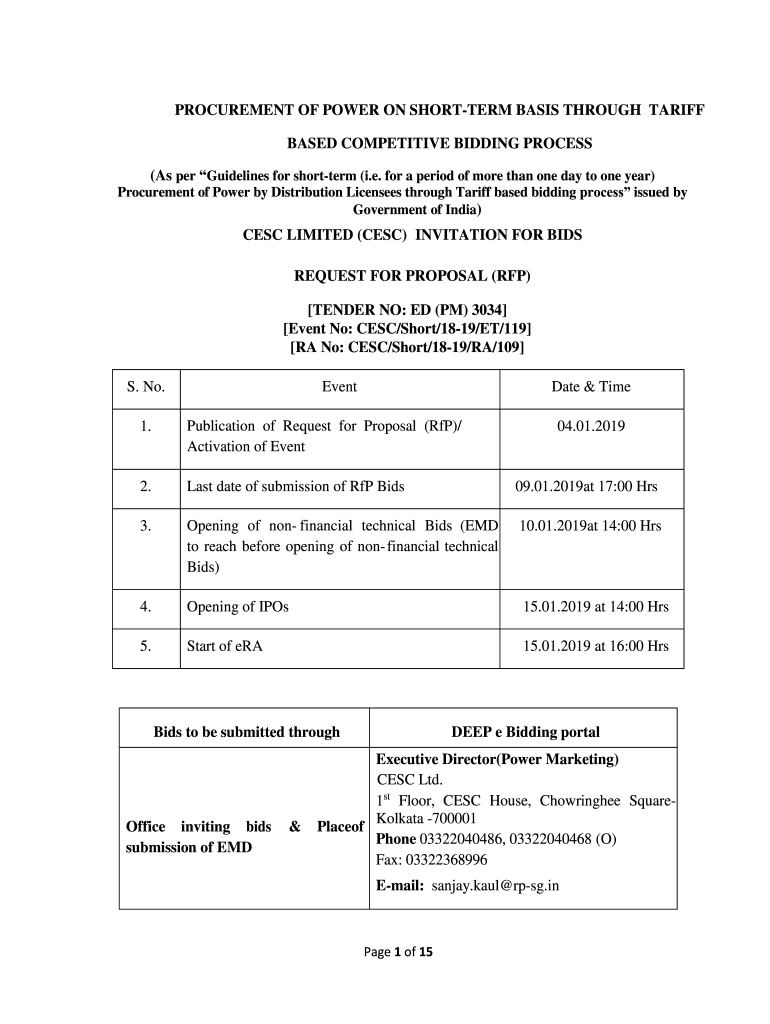 PROCUREMENT OF POWER ON SHORTER BASIS THROUGH TARIFF BASED COMPETITIVE BIDDING PROCESS (As per Guidelines for short term (i.e. for a period of more than one day to one year) Procurement of Power by