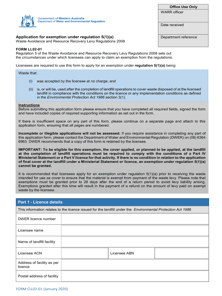 Get the free FORM CLL02-01 (January 2020) Application for exemption ...