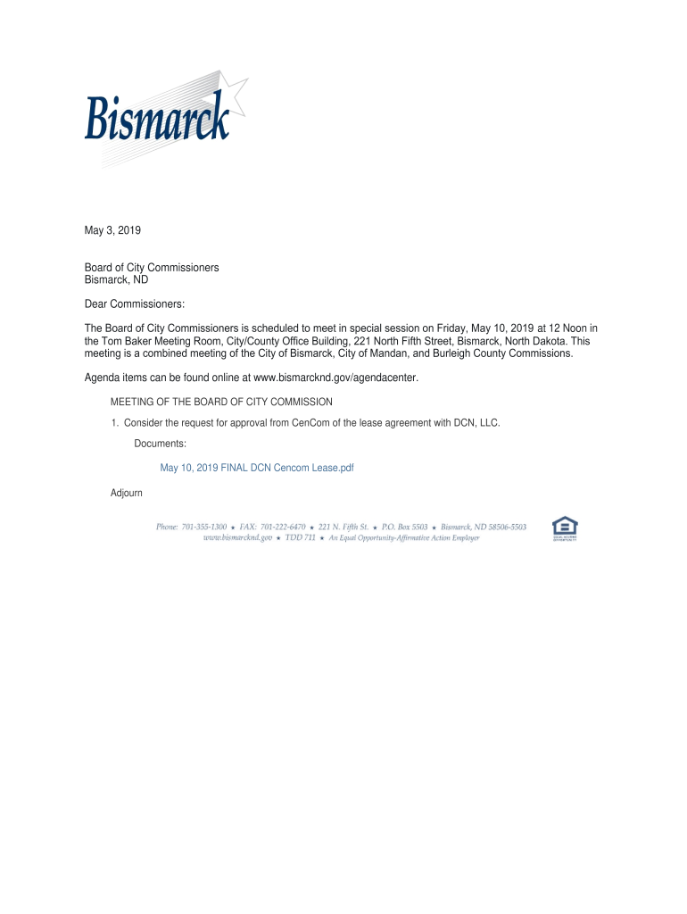 The Board of City Commissioners is scheduled to meet in special session on Friday, May 10, 2019, at 12 Noon in