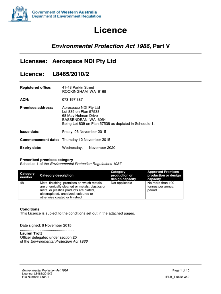 ROCKINGHAM WA 6168ACN:073 197 387Premises address:Aerospace