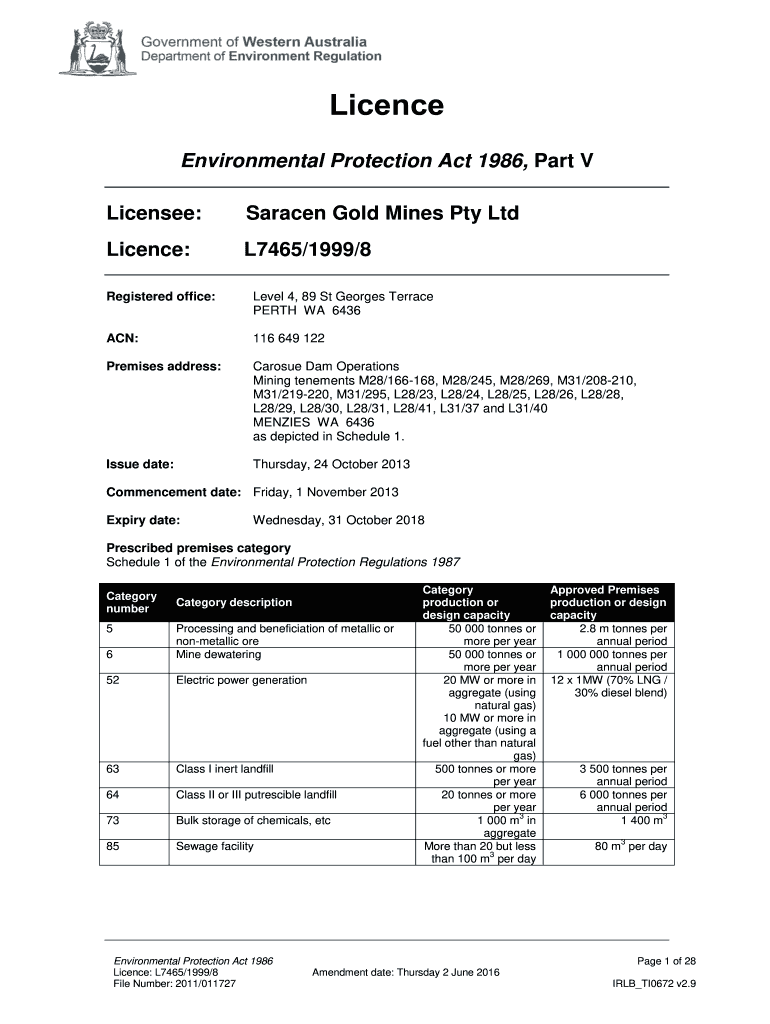 Licensee:Saracen Gold Mines Pty LtdLicence:L7465/1999/8Registered office:Level 4, 89 St Georges Terrace
