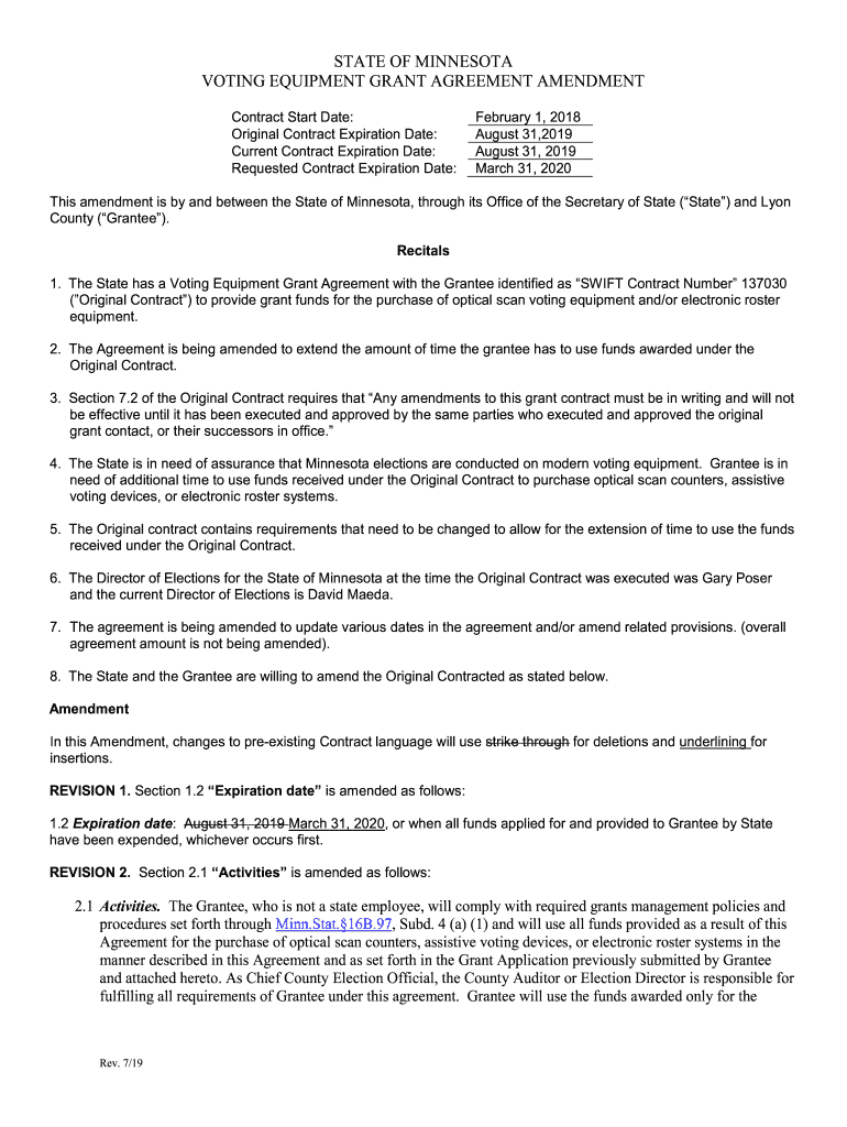 VOTING EQUIPMENT GRANT AGREEMENT AMENDMENT
