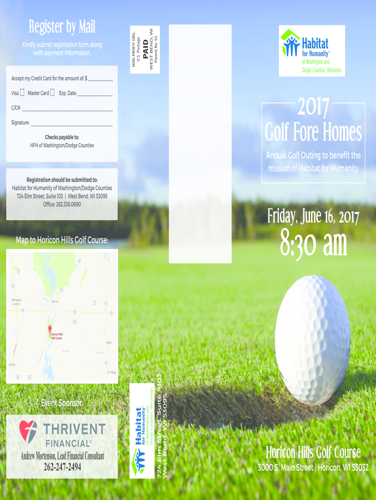 MIDWEST BEND, WI Permit No. 92Kindly submit registration form along with payment information. NONPROFIT ORG. U.S. PostageRegister by Mail Accept my Credit Card for the amount of: $ Visa Master Card2017Exp.