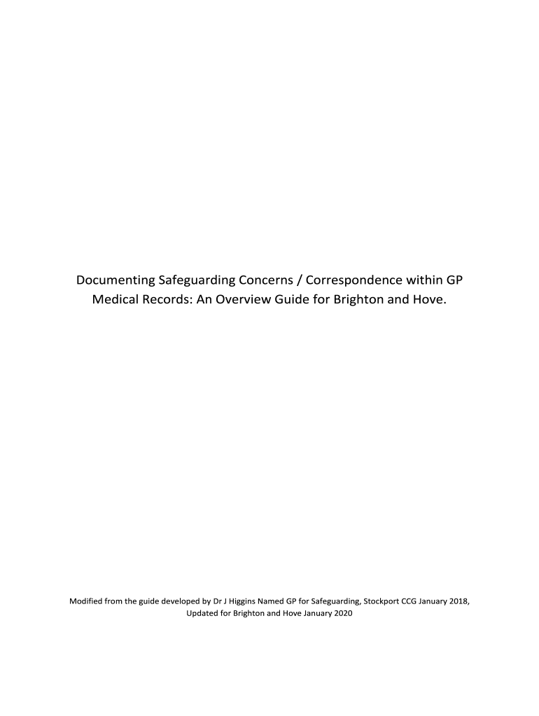 Documenting Safeguarding Concerns / Correspondence within GP Medical Records: An Overview Guide for Brighton and Hove. Modified from the guide developed by Dr J Higgins Named GP for Safeguarding,