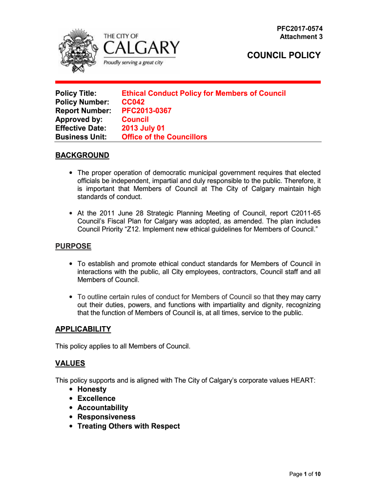 Get the free Ethical Conduct Policy for Members of Council
