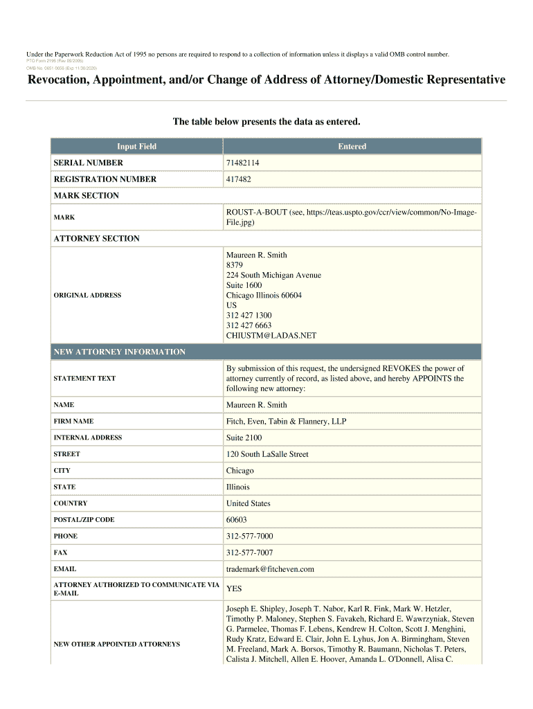 PTO Form 2196 (Rev 09/2005)