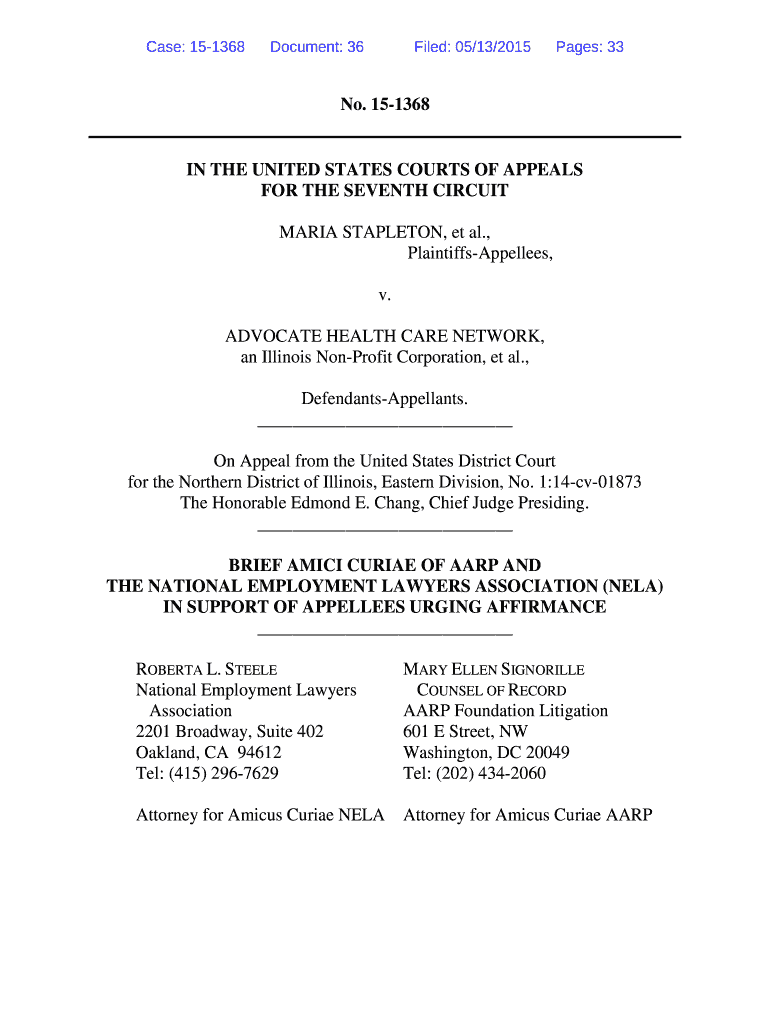 No. 151368IN THE UNITED STATES COURTS OF APPEALS FOR THE SEVENTH CIRCUIT MARIA SIMPLETON, et al., PlaintiffsAppellees, v. ADVOCATE HEALTH CARE NETWORK, an Illinois Nonprofit Corporation, et al., DefendantsAppellants.