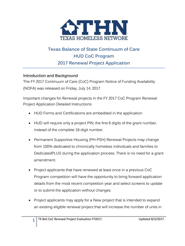 The FY 2017 Continuum of Care (COC) Program Notice of Funding Availability