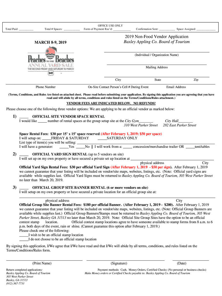 Get the free 2019 Non-Food Vendor Application MARCH 8-9, 2019 Baxley ...