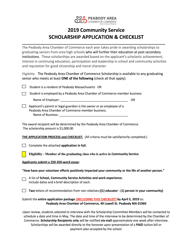 SCHOLARSHIP APPLICATION & CHECKLIST