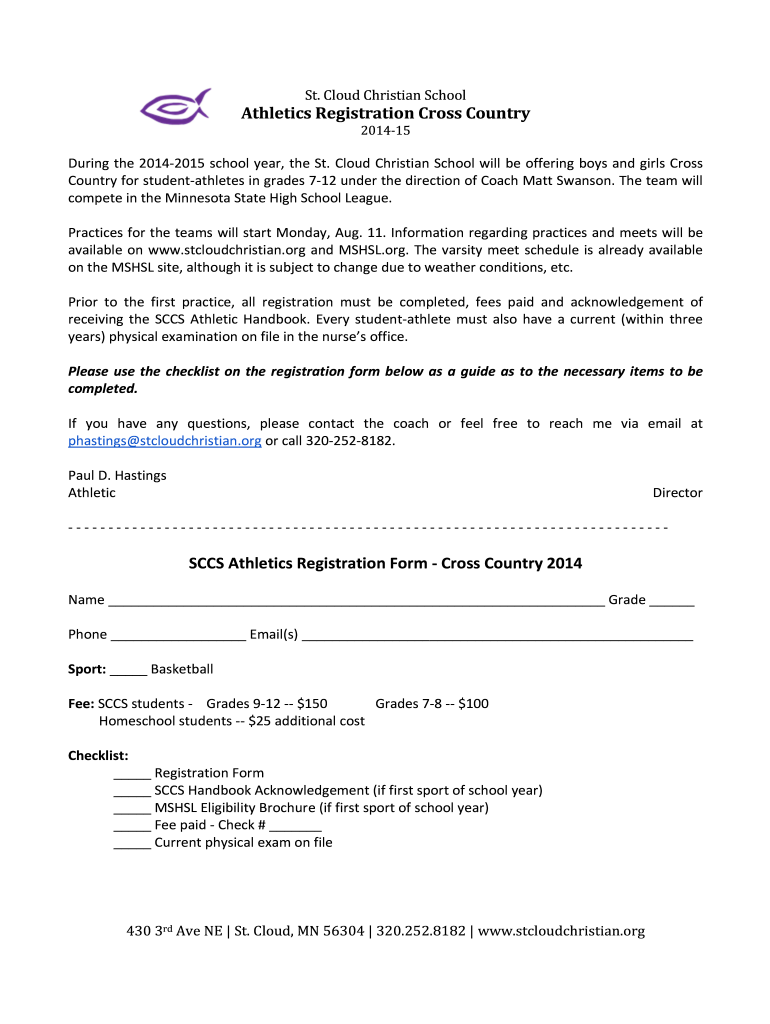 St. Cloud Christian SchoolAthletics Registration Cross Country