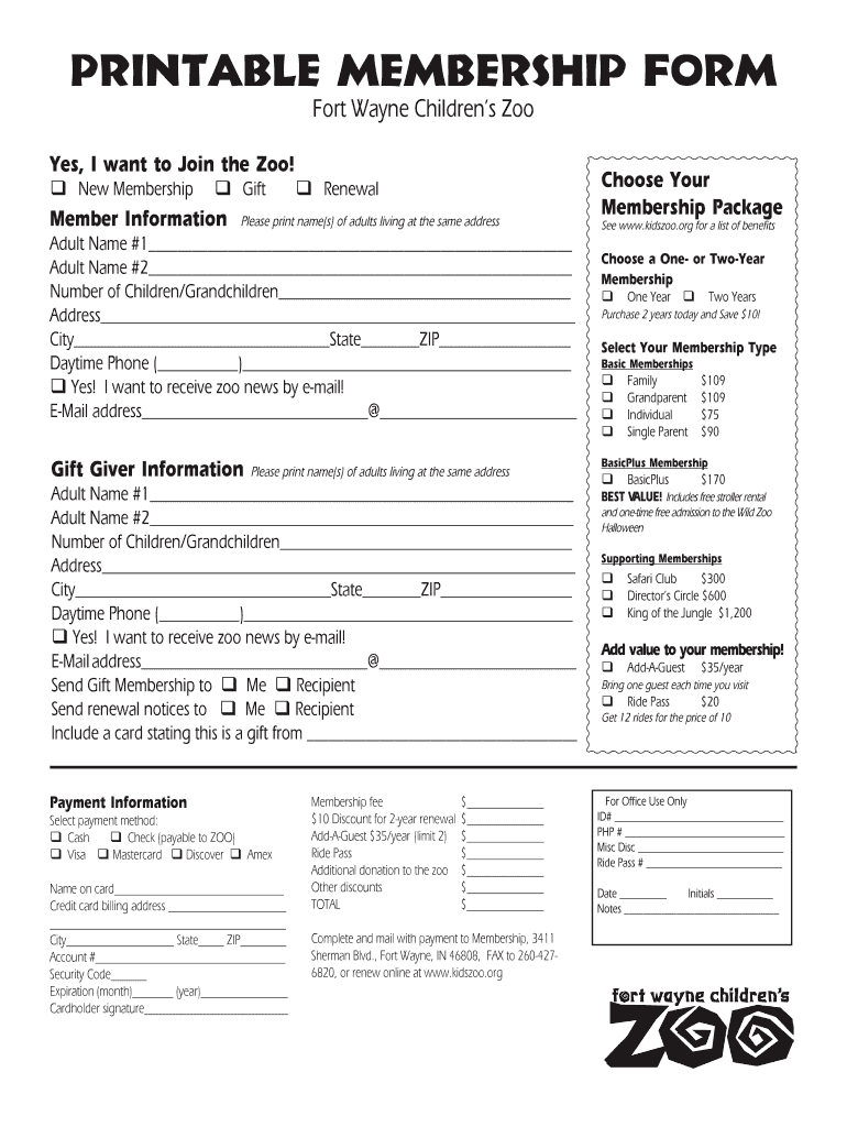 Key Features of the Fort Wayne Children's Zoo Membership Form
