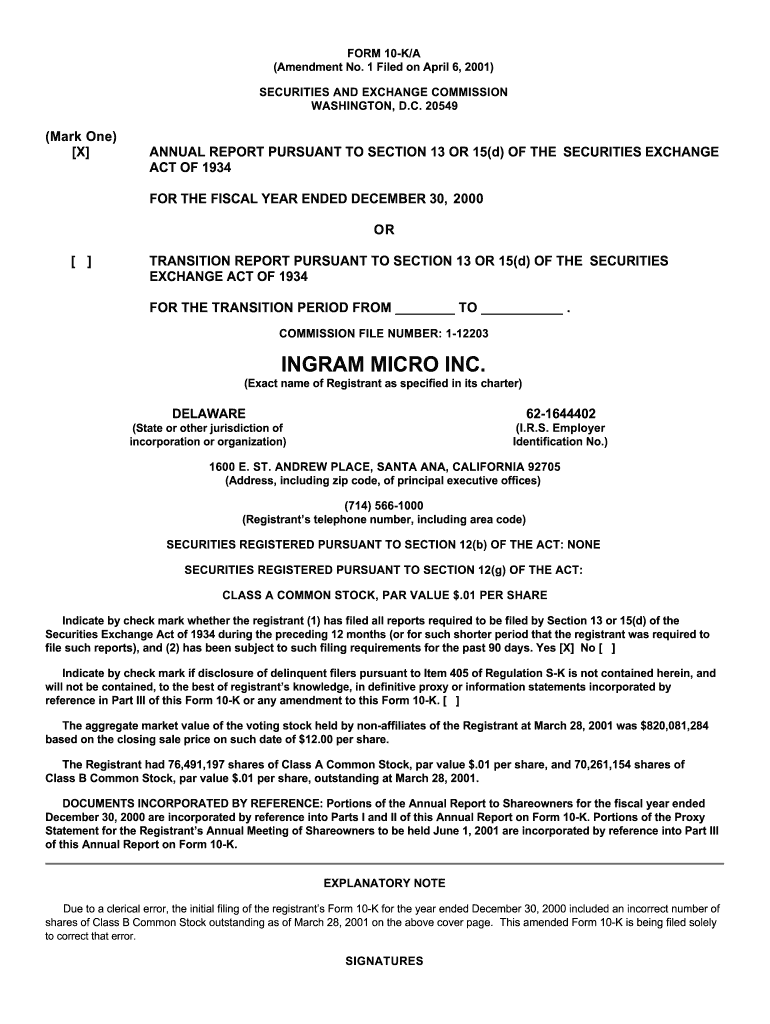 FORM 10K/A (Amendment No. 1 Filed on April 6, 2001) SECURITIES AND EXCHANGE COMMISSION WASHINGTON, D.C. 20549(Mark One) X ANNUAL REPORT PURSUANT TO SECTION 13 OR 15(d) OF THE SECURITIES EXCHANGE ACT