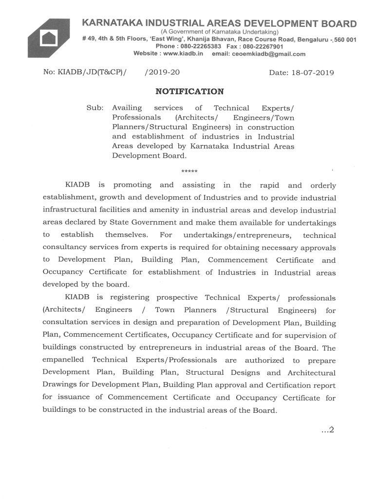 Application Form for Embankment of Architects / Town Planners / Structural Engineer/ Engineer The Chief Executive Officer & Executive Member Karnataka Industrial Area Development Board East Wing V