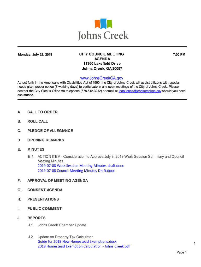 Monday, July 22, 2019CITY COUNCIL MEETING