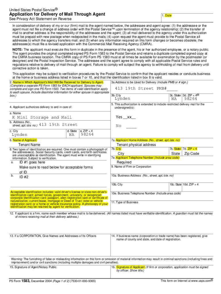To use USPS Form 1583, applicants must have valid identification and provide accurate information about their mailing needs. Both the applicant and agent must sign the form.