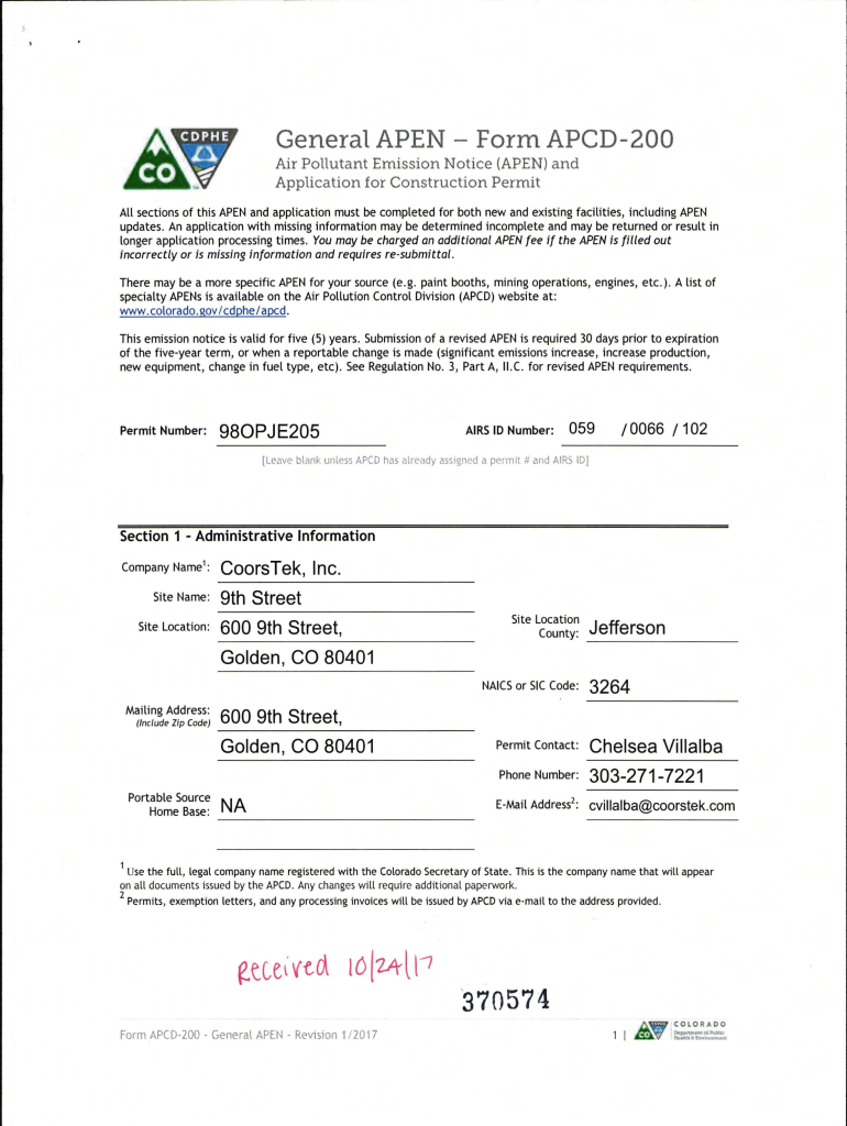 General Perform APCD200Air Pollutant Emission Notice (OPEN)application for ConstructionPermitapplication must be completed for both new and existing facilities, including OPEN