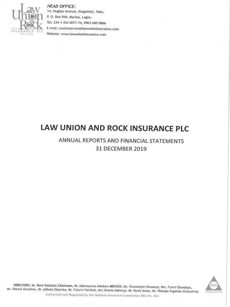 Get the free law union and rock insurance plc - Nigerian Stock Exchange