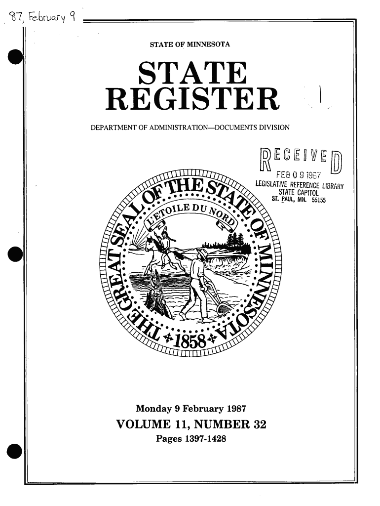 ST. PAUL, MN. 55155Monday 9 February 1987VOLUME 11, NUMBER