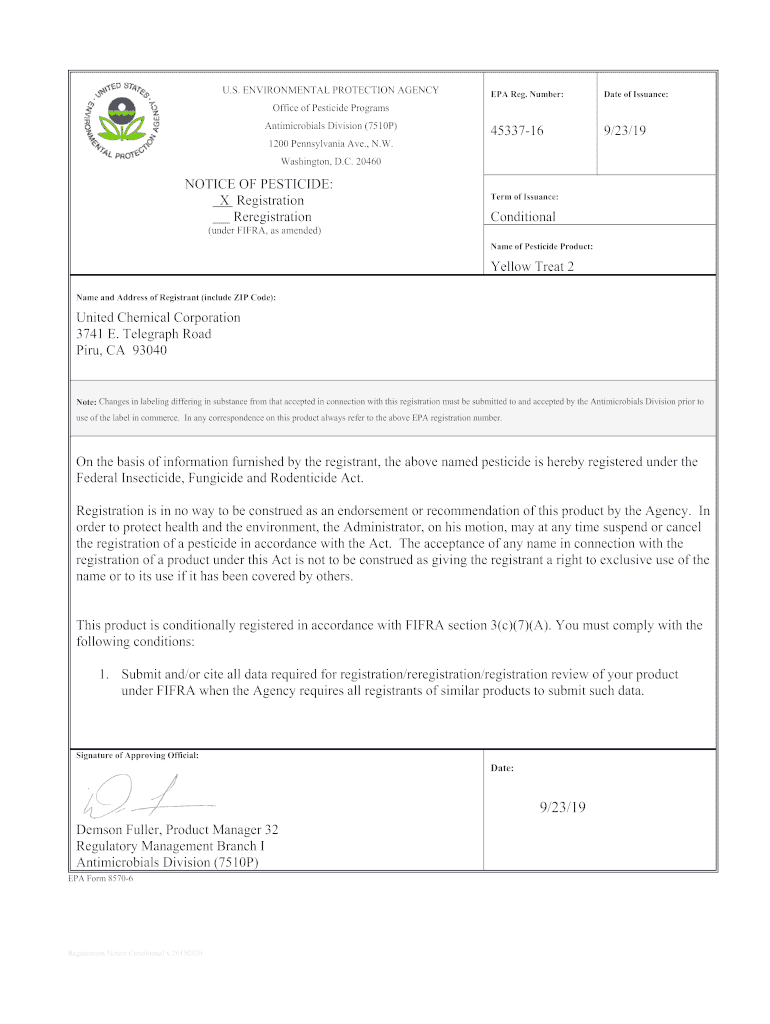 Get the free US EPA, Pesticide Product Label, Yellow Treat 2,09/23/2019. Pesticide Product Label,...