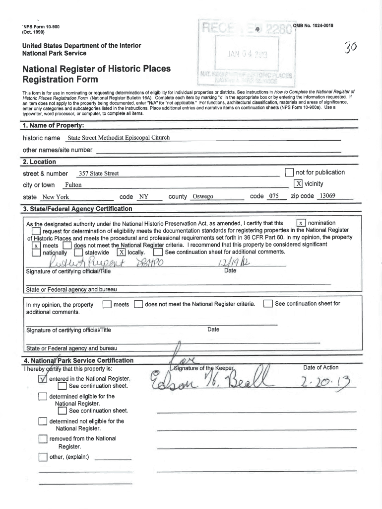 'NPS FRM 1osoo (Oct. 1990). United States Department of the Interior National Park Service, 1 OMB No. 102400183JAN '. 4 '!i: ', ':National Register of Historic Places Registration Oriented only category