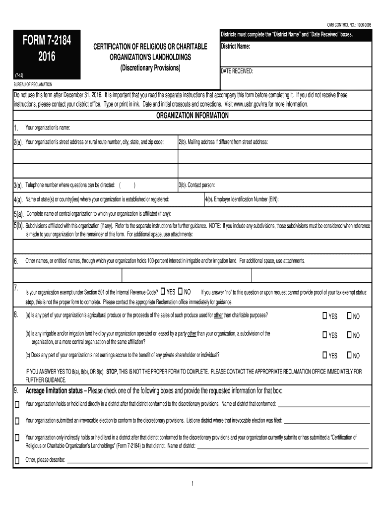 2016Districts must complete the District Name and Date Received boxes. CERTIFICATION OF RELIGIOUS OR CHARITABLE