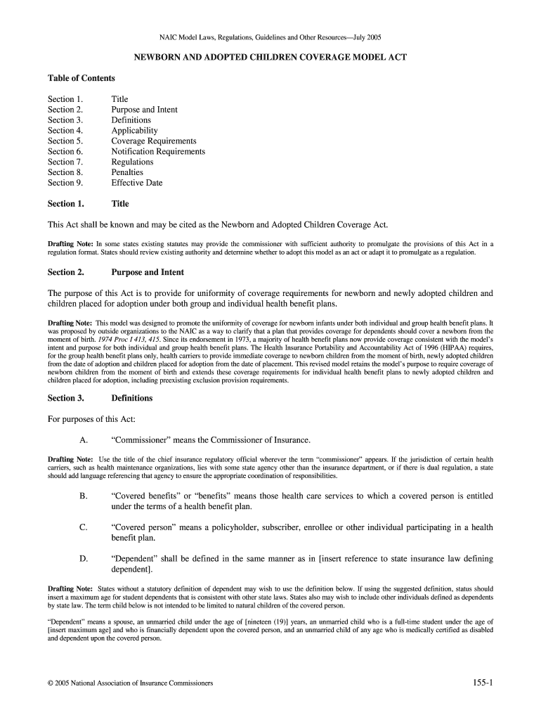 NAIL Model Laws, Regulations, Guidelines and Other Resources July 2005NEWBORN AND ADOPTED CHILDREN COVERAGE MODEL ACT