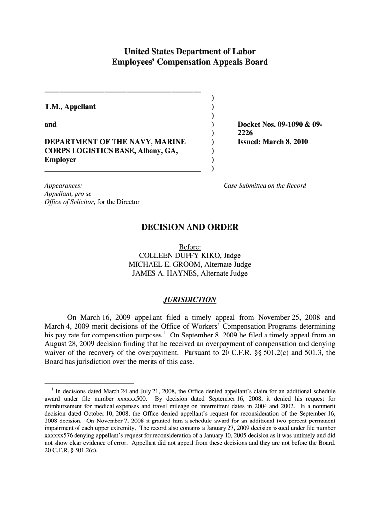 United States Department of Labor Employees Compensation Appeals Board T.M., Appellant and DEPARTMENT OF THE NAVY, MARINE CORPS LOGISTICS BASE, Albany, GA, Employer)))))))))Appearances: Appellant,